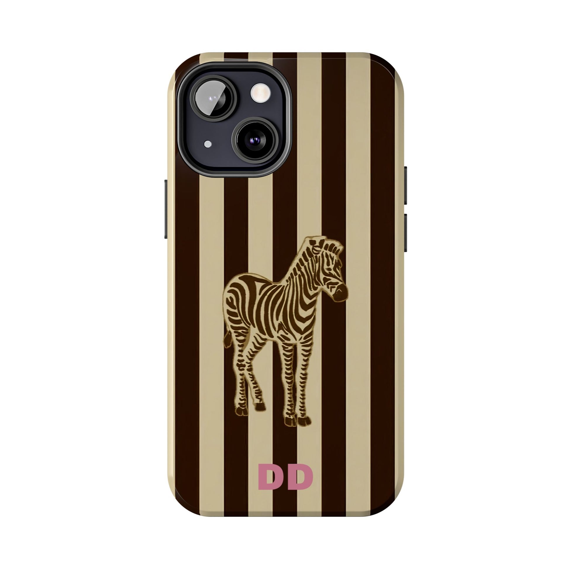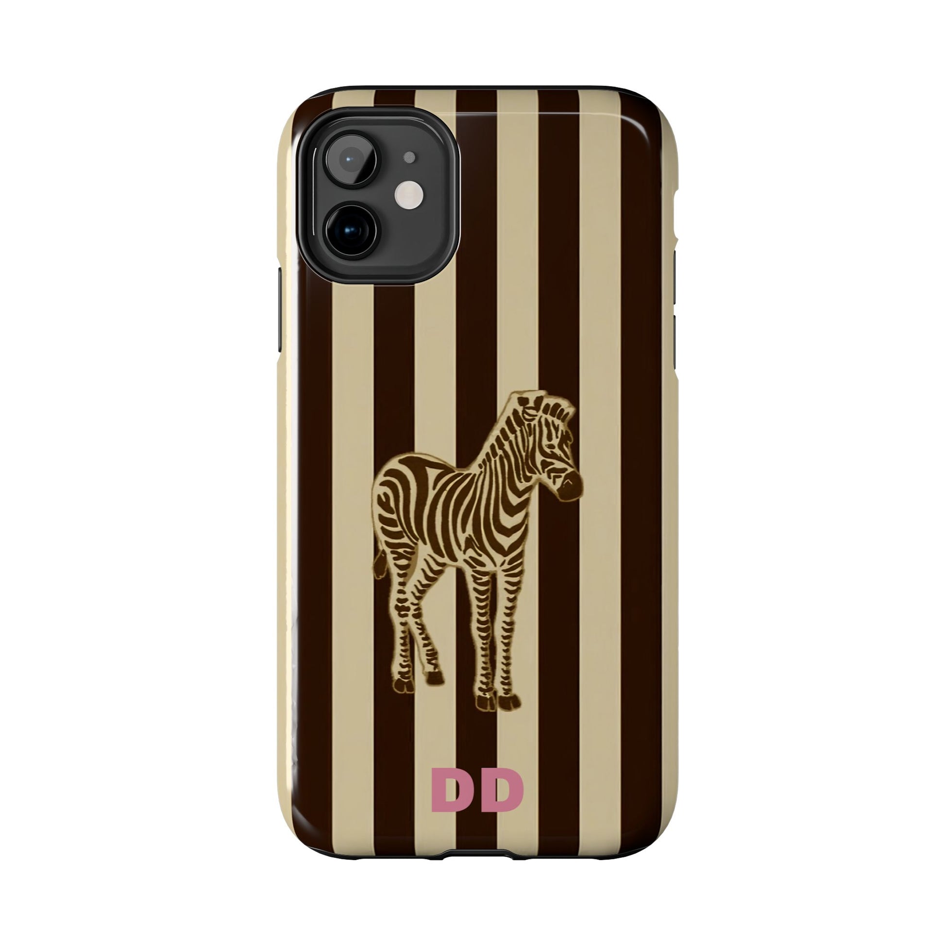 Zebra Phone Case in Chestnut & Crème Stripe