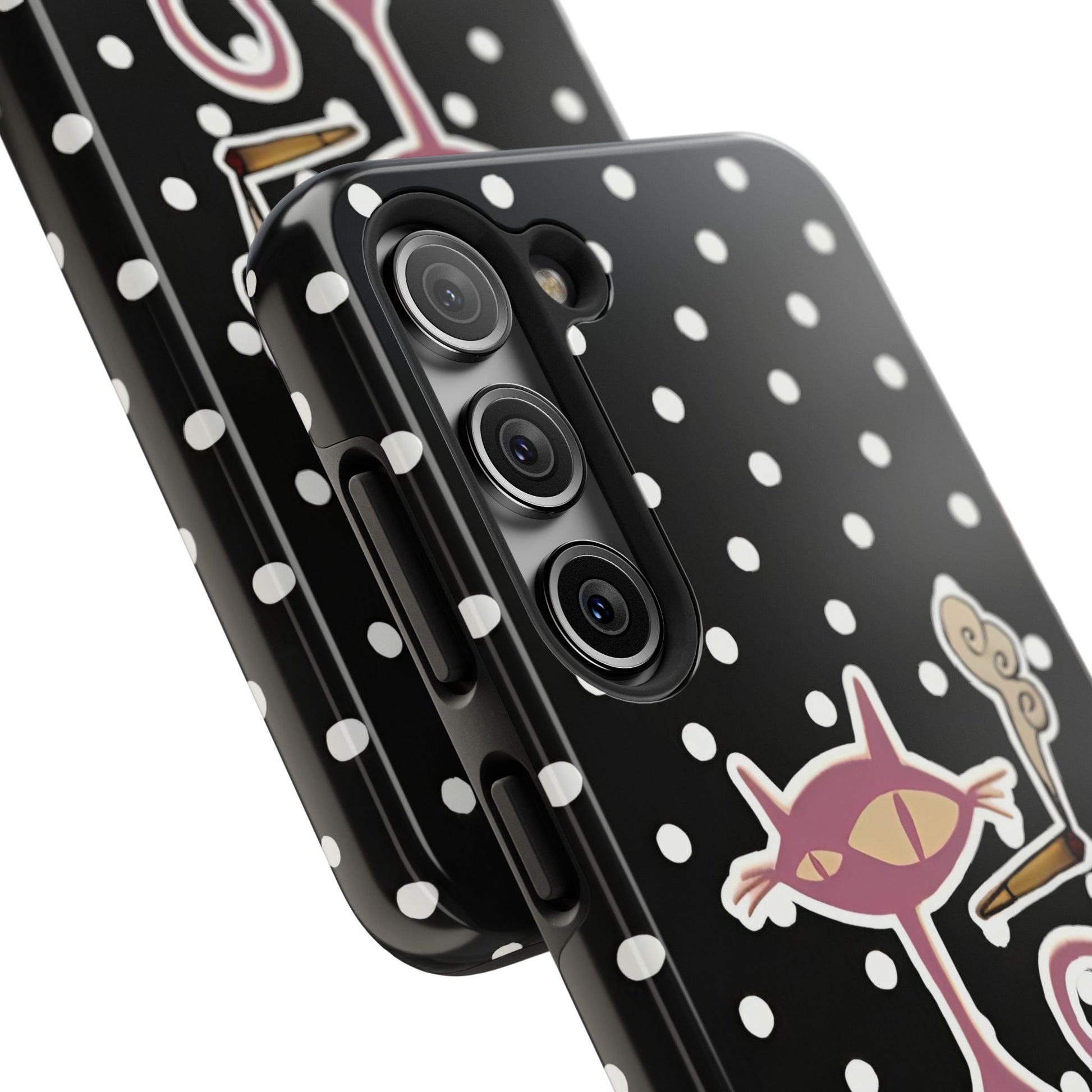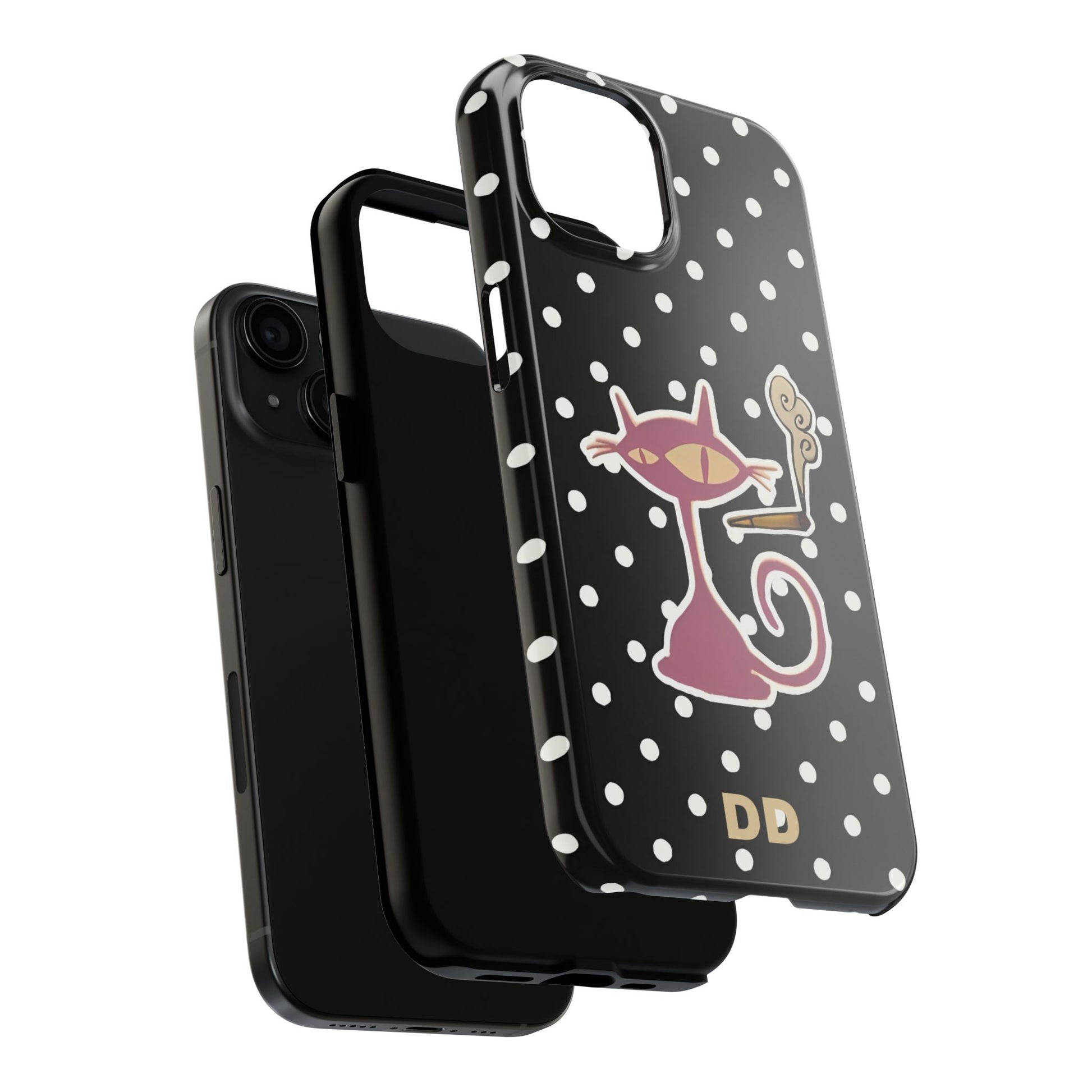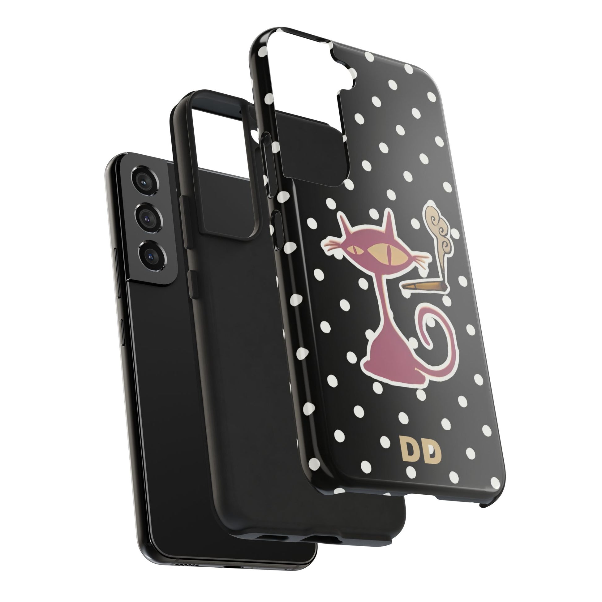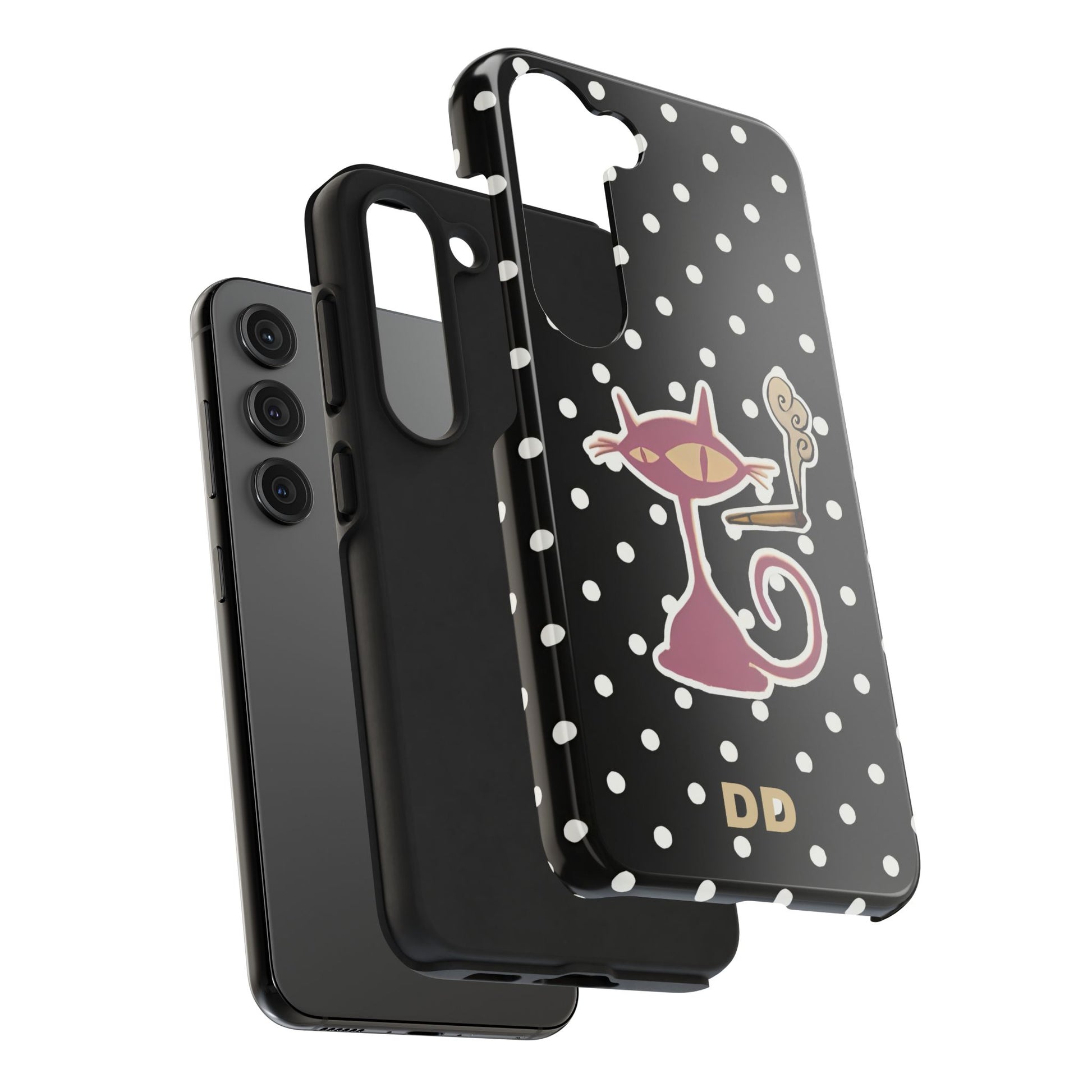 Transform your phone into a work of art with the Black Le Cat Phone Case.