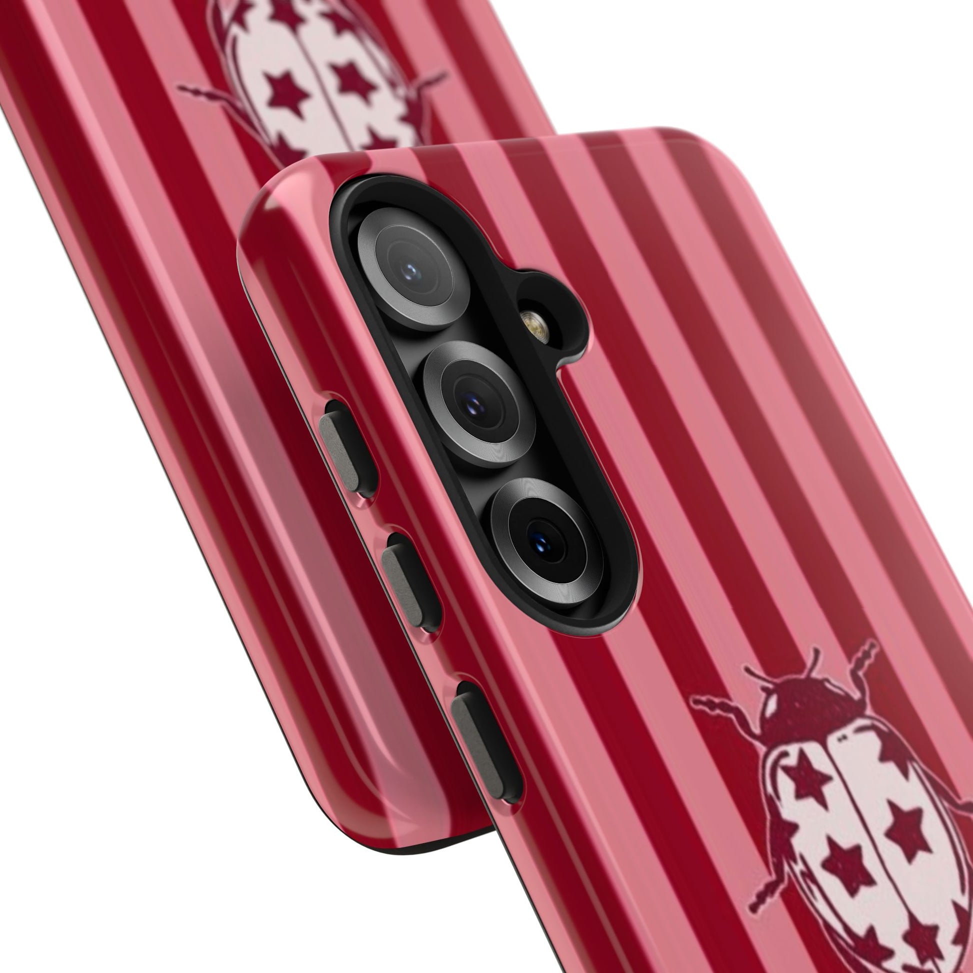 Spread your wings with the Ladybug Phone Case in Red & Pink Stripe. This charming design features playful red and pink stripes that bring a sweet, cheerful energy to your device.
