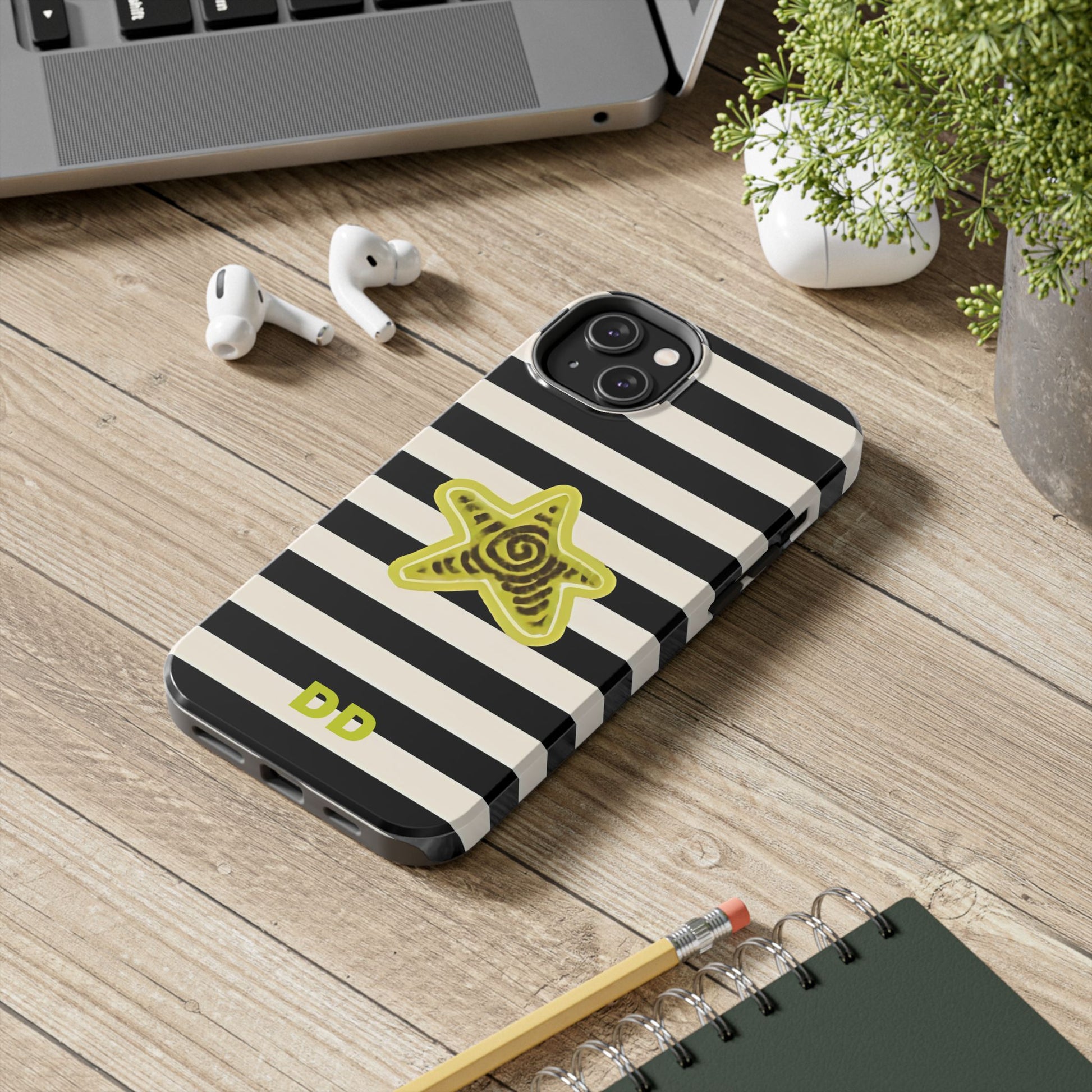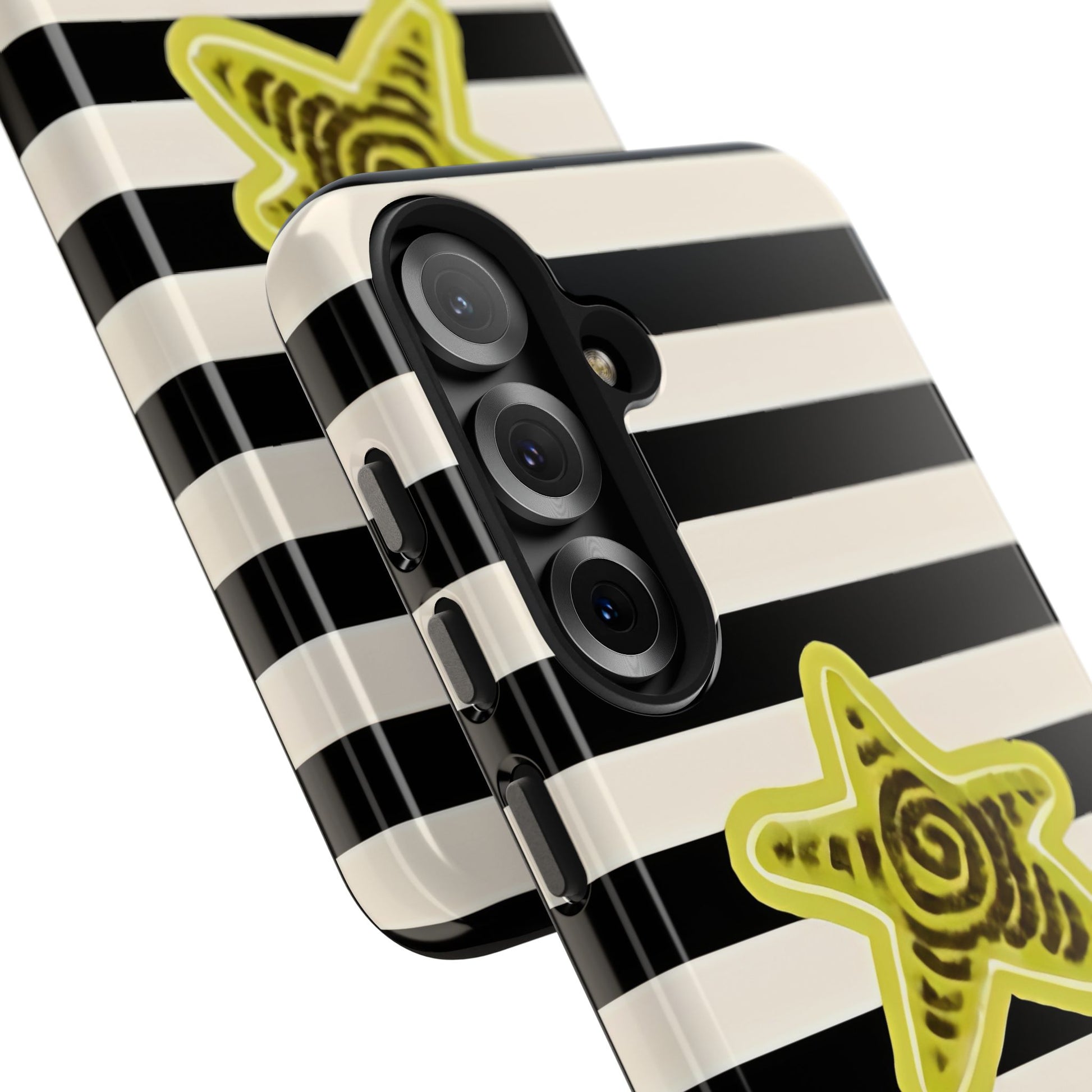 Transform your phone into a work of art with the Striped Lime Star Phone Case. This mesmerizing design features flowing patterns that create a dynamic, eye-catching look.